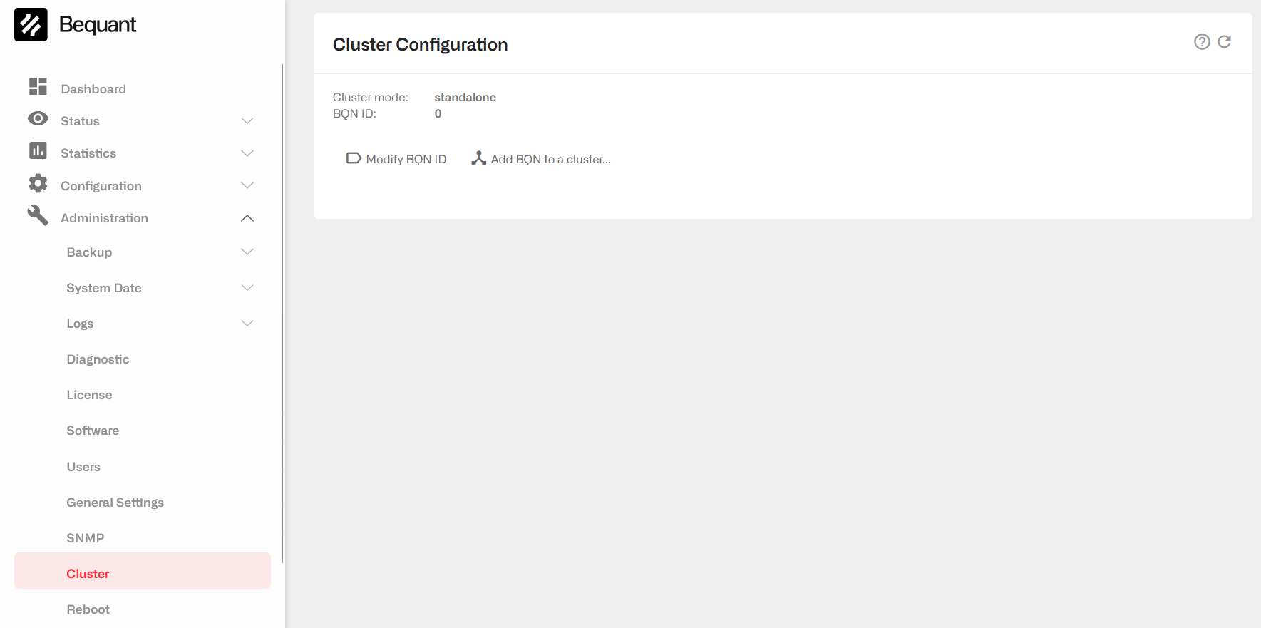 - Go to Administration->Cluster andclick on Modify BQN ID.