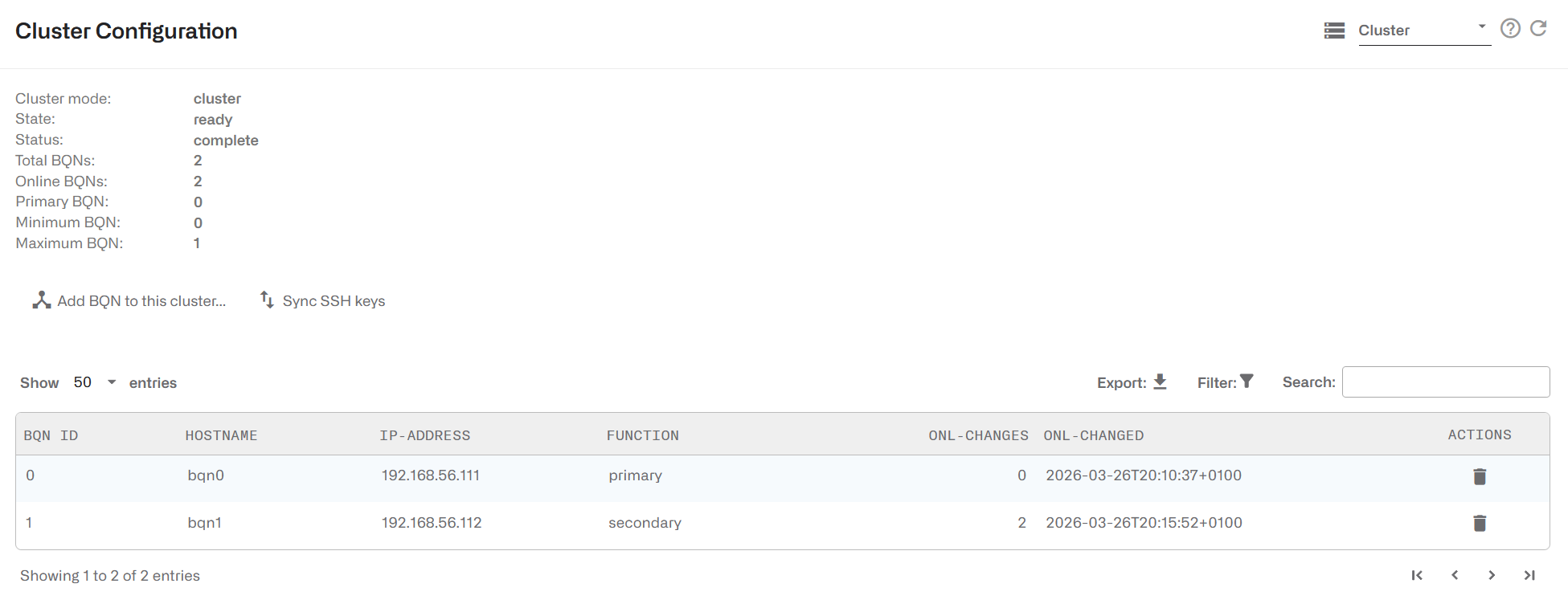 You can repeat the process to add more servers to the cluster by going to that server GUI and clicking on Add BQN to a cluster.