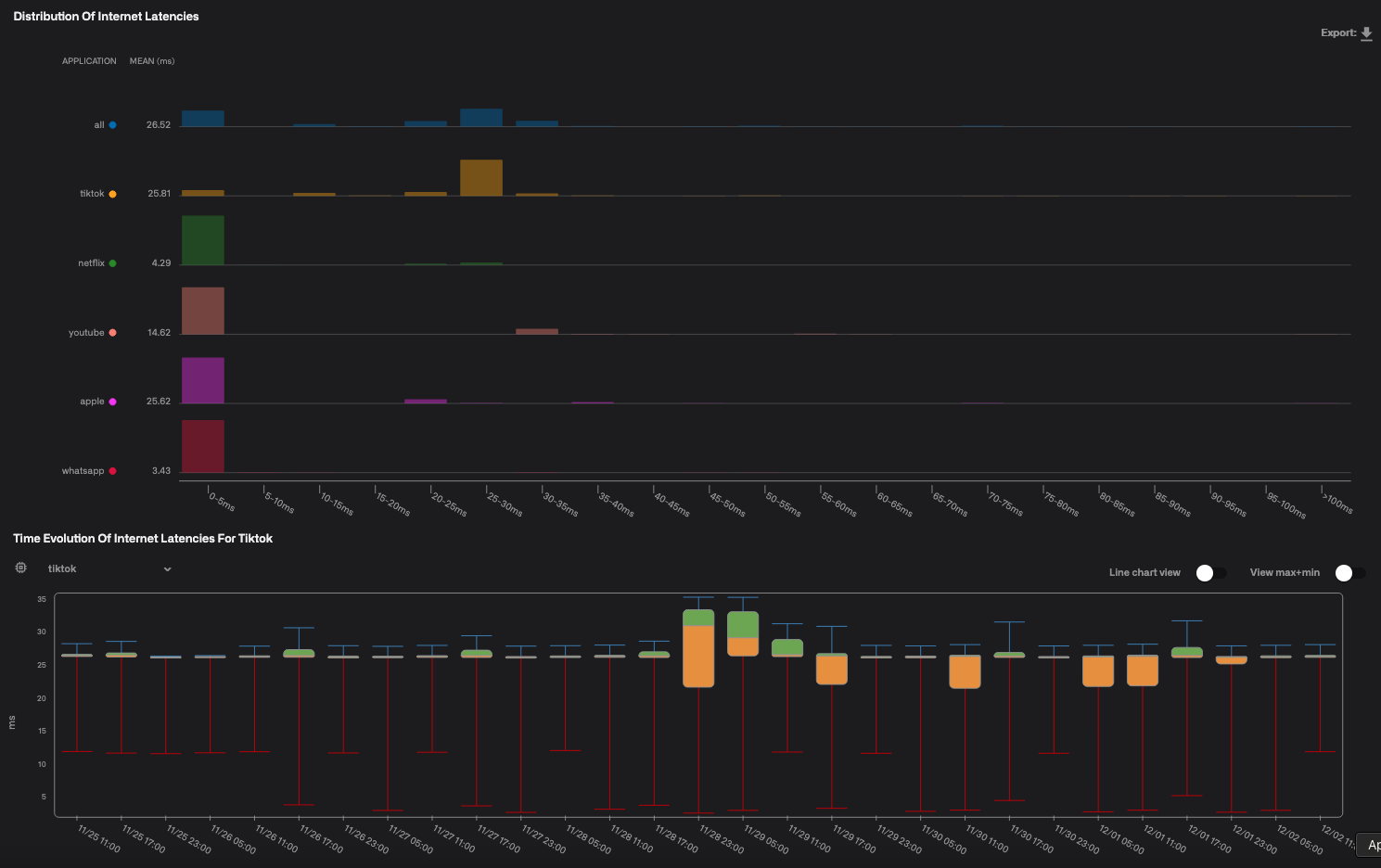Analyze per-application internet latency. Complementing the application speed graphs, the new graphs for Internet latency give you a full picture of the quality you are delivering per application. They let you compare the latencies from your network to the different content providers and see if you obtain lower latencies from certain Internet service providers, which will determine the quality you deliver to your customers, and how those latencies evolve over time.